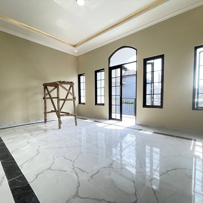 - Ruang tamu, ruang keluarga, ruang laundry, dapur modern