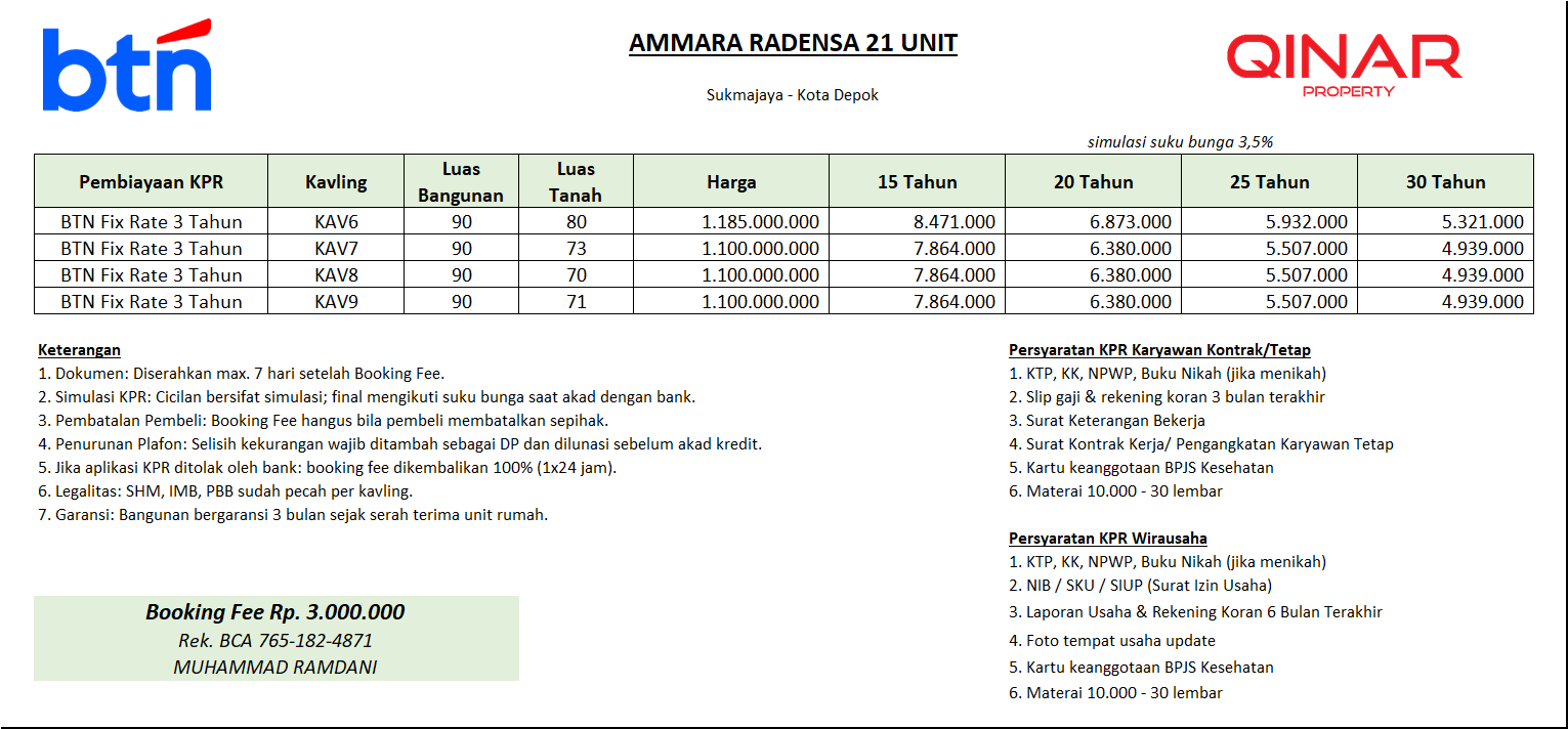 Bekerjasama dengan KPR bank: BSI, BTN, BRI, MANDIRI, BTN Syariah
